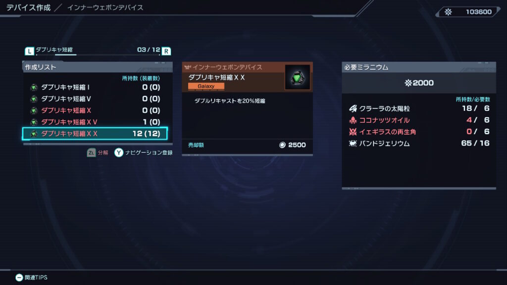 インナーウェポンデバイス➞アーツスペック➞ダブルリキャ短縮XX