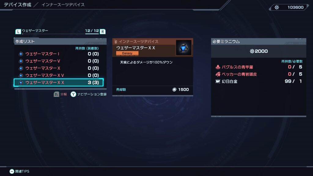 インナースーツデバイス➞天候➞ウェザーマスターXX