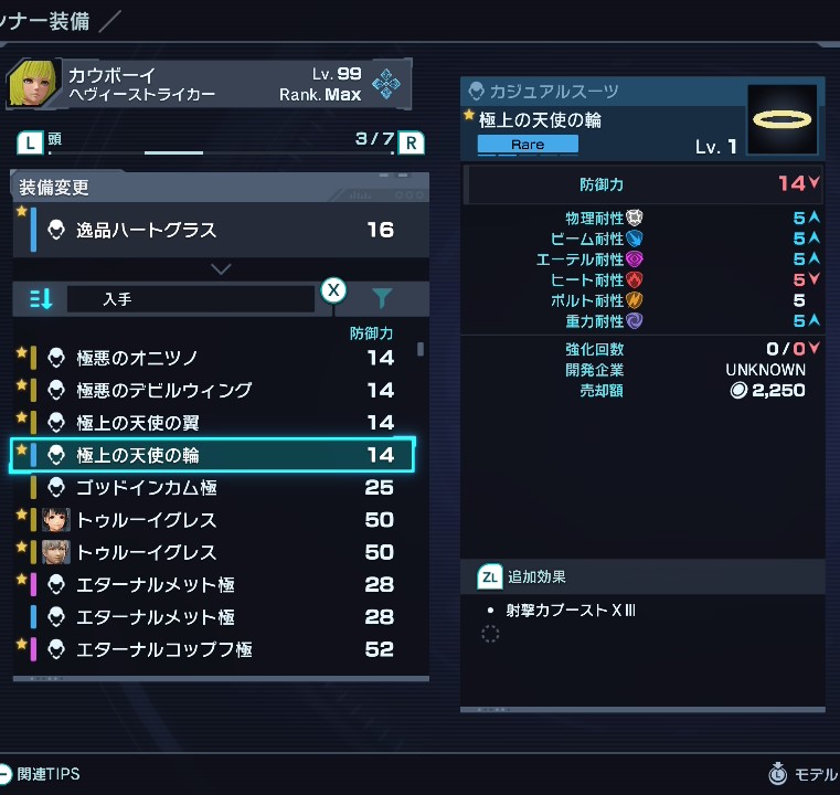 頭装備で射撃力ブーストがつくのはこの天使の輪シリーズのみ。射撃力アップ、射撃力ブーストのデバイスはインナーウェポンのみのため、インナーウェポンデバイスの兼ね合いで100%まで上げられない時におすすめ。